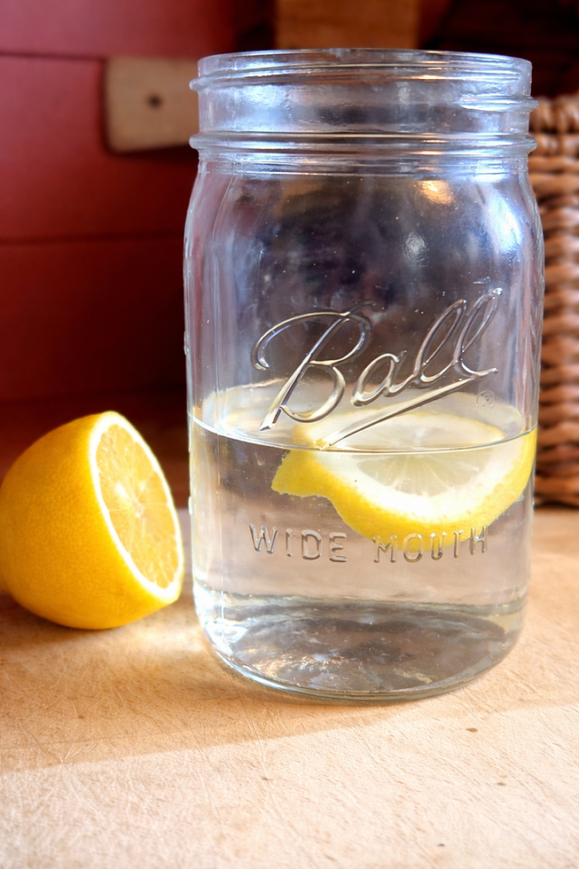 • Warm water + fresh lemon